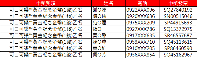 凡活動期間於統一超商購買可口可樂公司指定品項任2瓶(含)以上,掃描QR Code進入活動網站,成功登錄發票抽可口可樂™黃金紀念金幣(1錢)乙名(參考市價: 新台幣15,358元/個;),共8名。