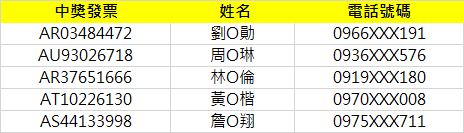 中獎名單-通知/公布:
