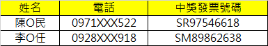 2. 每張發票僅限中獎乙次,不得重複中獎。