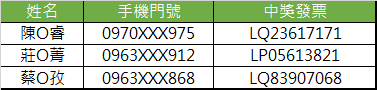 - 中獎者需於兌獎收件截止時間內寄回領獎相關憑證,且所有兌獎憑證須經主辦單位檢核並以主辦單位審核為準;若中獎憑證與系統所登錄不符,或任何不完整、損毀、偽造、經改動的、複製或超過兌換期限的中獎發票均視為無效,主辦單位有權取消相關中獎者之兌獎資格。