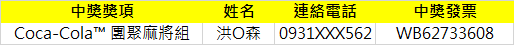 中獎者請自行下載領獎信函,將填妥的「領獎信函」+「中獎發票正本及消費明細」+「身分證正反面影本」,於兌獎收件截止時間前將兌獎資料送達【10476台北市中山區復興北路368號5樓-全家 × Coke Peach桃氣開運活動小組收】,逾期視為放棄該得獎權利,不得向主辦單位要求任何補償。