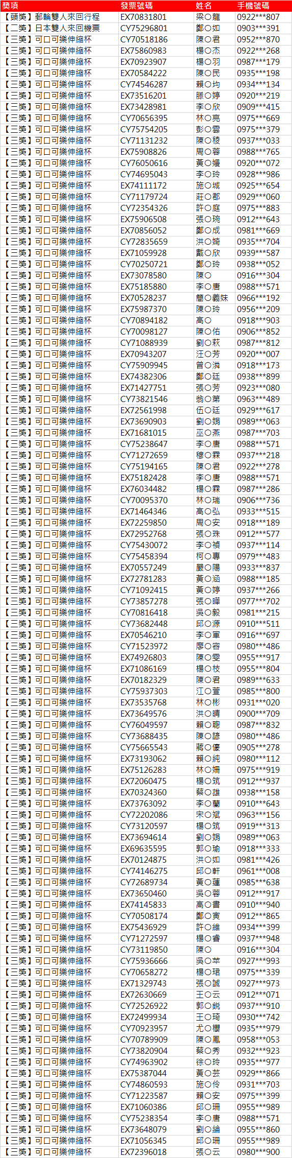 *若因個人門號設定阻擋陌生簡訊而無法接收到中獎通知,活動小組恕不逐一通知